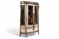 Stately and elegant, the Gloria Vitrine is a classic piece adorned with intricate gold leaf detailing. This unique display case is sure to add sophistication and charm to any room it graces.