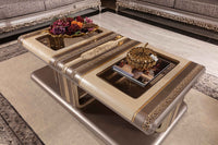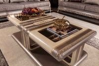 Enhance any living space with the Vitale Coffee Table. This classic piece exudes luxury with its intricate carved details, finished in a striking gold leaf. Elevate your home with timeless elegance and sophistication.