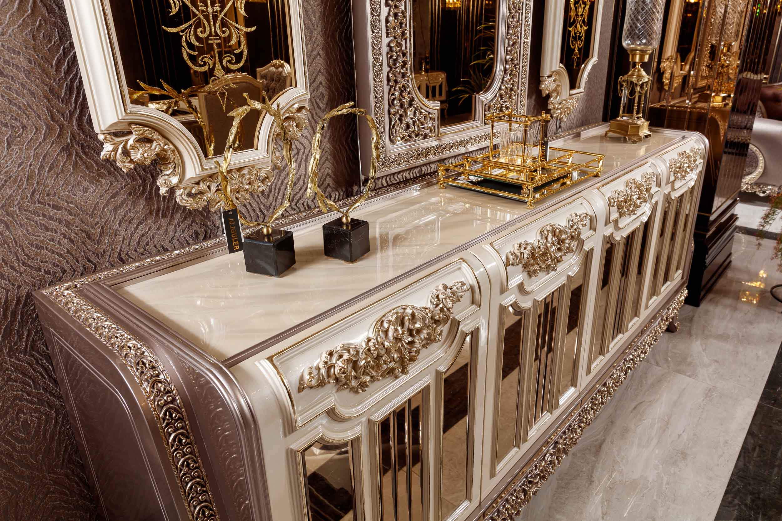 The Vitale Console combines classic design with elegant gold leaf detailing, creating a truly unique piece. Crafted with expert craftsmanship, this console adds a touch of sophistication to any space. Elevate your home decor with this one-of-a-kind console.