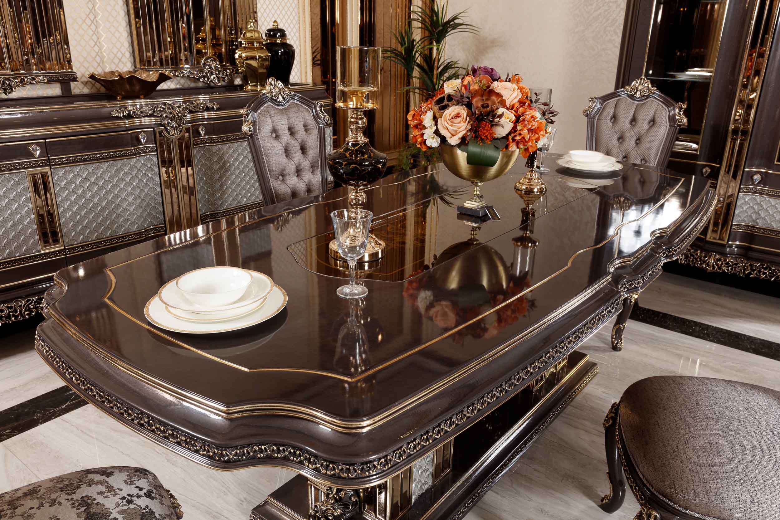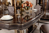 The Sirius Dining Table brings timeless elegance to your dining space with hand-carved details and a lustrous lacquer finish. Crafted in the classic tradition, this table showcases intricate carvings that catch the light beautifully, creating visual depth and sophistication. The premium lacquer coating provides a durable, high-gloss surface that resists daily wear while maintaining its refined appearance. Perfect for those who appreciate traditional craftsmanship and enduring design.