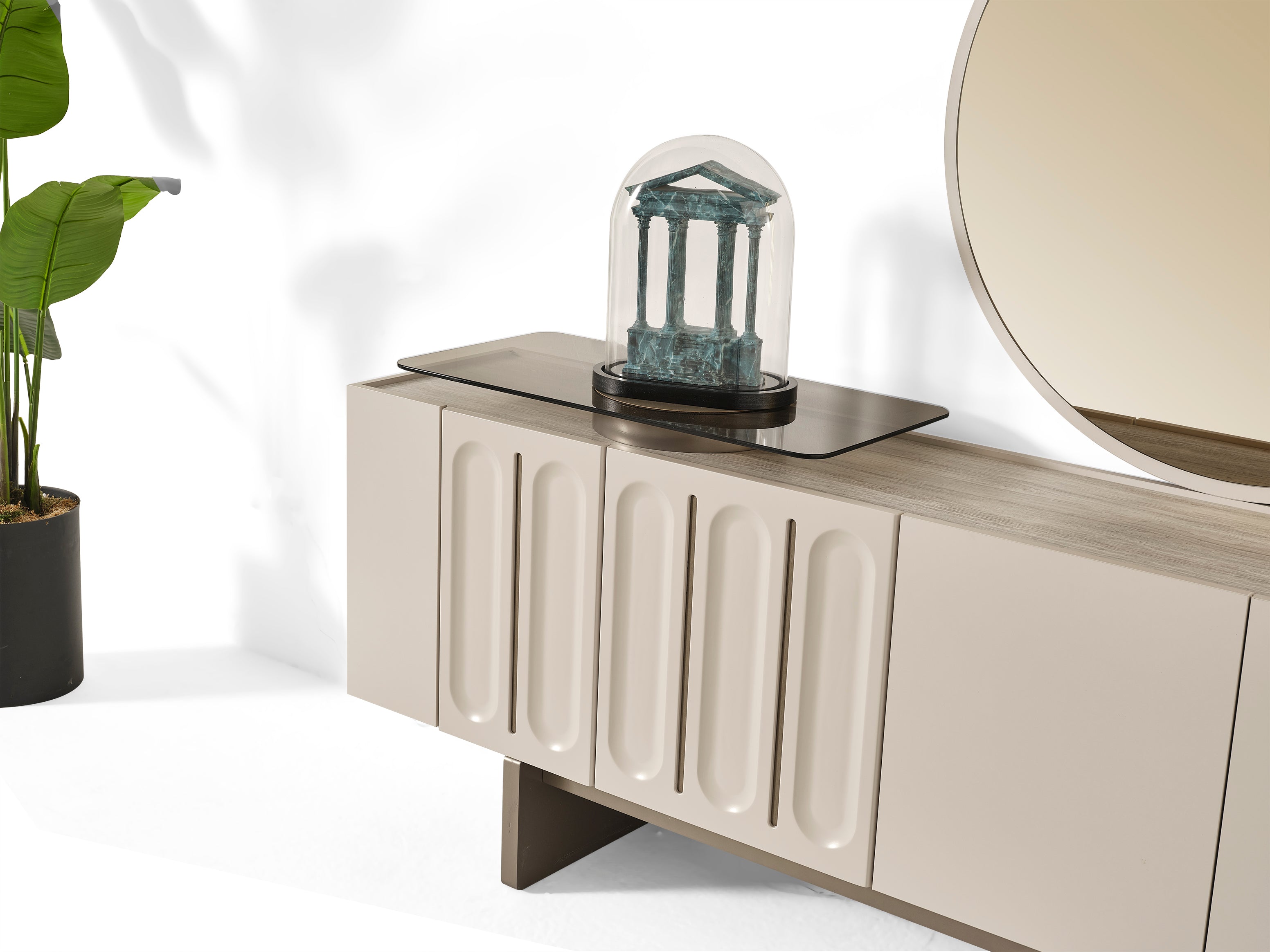 The Petra Sideboard combines sleek modern design with a neutral color palette, making it an adaptable centerpiece for any contemporary living space. Its clean lines and subtle tones create a calm, sophisticated ambiance while providing ample storage to keep your home organized. Crafted for both style and functionality, this sideboard enhances your interior with a refined, minimalist touch.