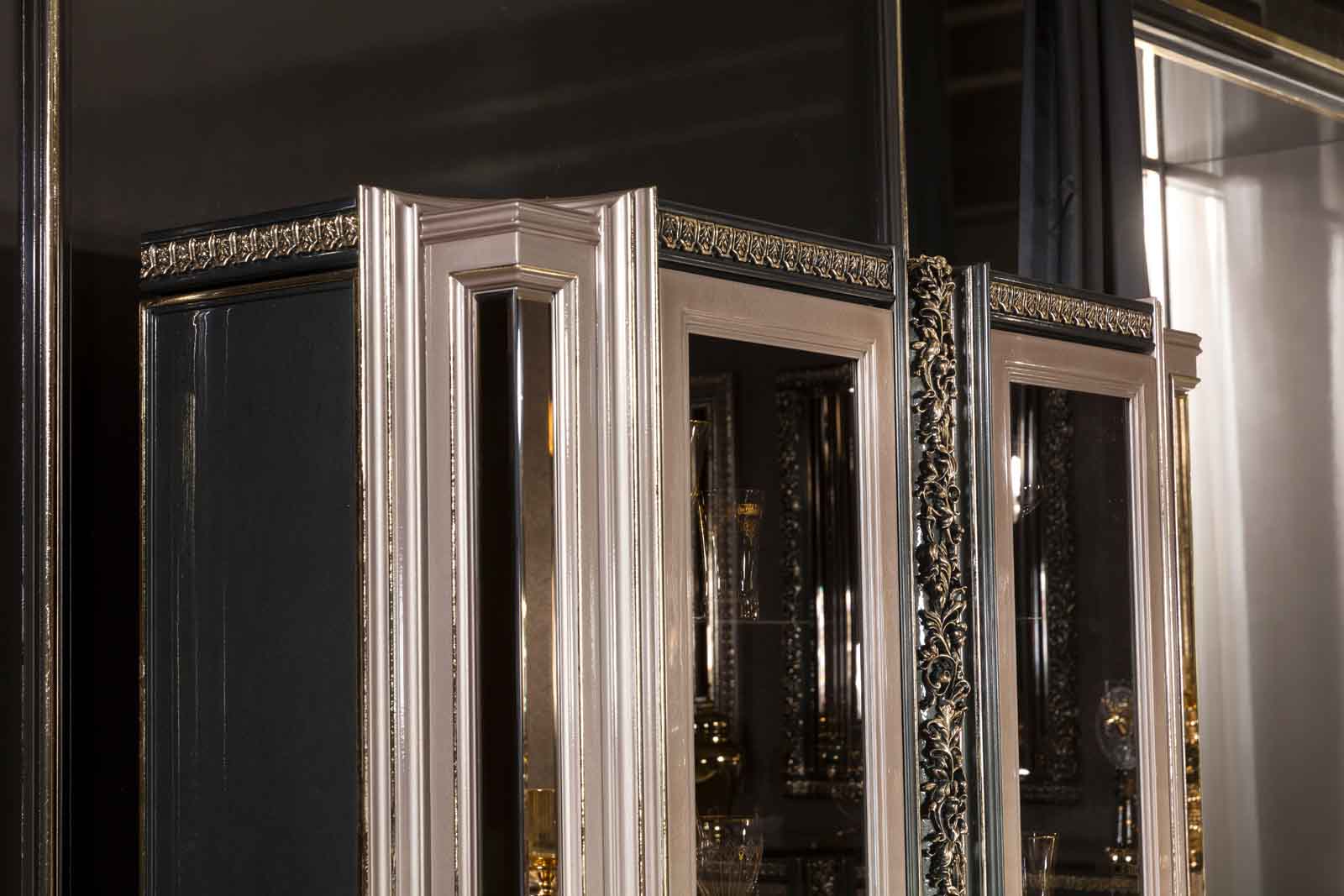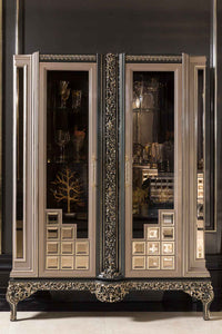 Elegant glass-front china cabinet with dual doors and classic proportions. Features mirrored backing to amplify light and showcase your finest dishware, glassware, or collectibles. Crafted for refined dining spaces, this piece combines timeless design with practical storage. The transparent glass panels provide display visibility while the sturdy frame ensures lasting durability. A sophisticated addition to any dining room or living area seeking understated elegance and functional beauty.